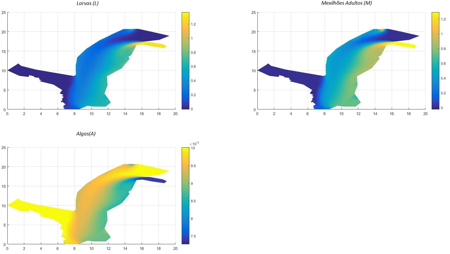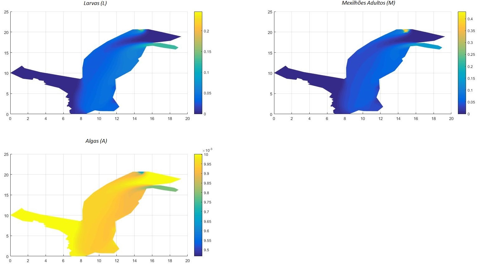 A presença do invasor biológico conhecido como mexilhão dourado se apresenta como uma importante ameaça ao funcionamento de hidroelétricas por se acumular nas estruturas comprometendo seu funcionamento. Neste estudo, propomos um modelo matemático para a dinâmica de crescimento da espécie no reservatório de Jupiá-SP. Os resultados evidenciaram o processo de infestação a partir da saída do rio Tietê e avançando gradativamente pela região, atingindo áreas que merecem atenção. O estudo, portanto, tem potencial para colaborar com o planejamento de ações de controle da infestação na região.